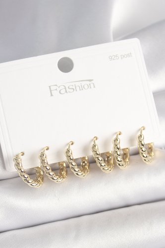 925 Ayar Gümüş Çivi Pirinç Gold Renk Sarmal Halka Model Kadın Küpe Seti