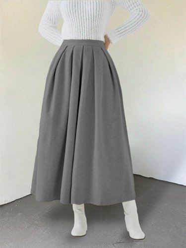 • Pileli Fermuarlı Kaşe Etek Gri
