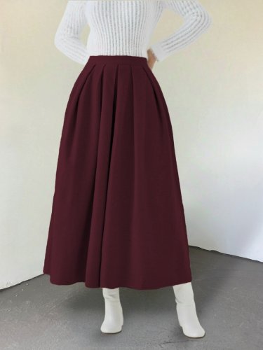 • Pileli Fermuarlı Kaşe Etek Bordo