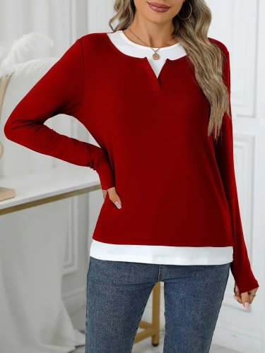 Kadın uzun kollu v yakalı çift renkli viskon iki iplik bluz