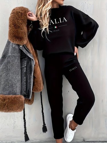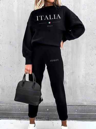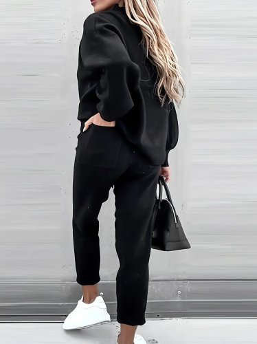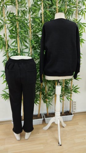 • Kadın uzun kollu bisiklet yaka şardonlu üç iplik bluz ve pantolon ikili takım
