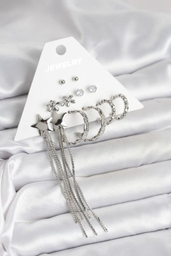 • Gümüş Renk Pirinç 6 Çift Kadın Küpe Seti